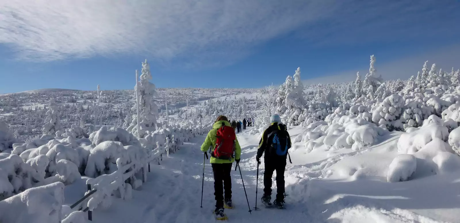 Reifträger und Schneekoppe, Teich- oder die Elbfallbaude: Schon mal von den schönsten Gipfeln und Bergbauden der Sudeten gehört? Von urigen Hütten und traumhaften Ausblicken, die nicht nur den Rübezahl begeistern? Durch seine Heimat wandern wir, durch glitzernde Schneelandschaft und genießen Fernblicke von den unzähligen Aussichtsbergen. Und wenn der Hunger ruft, kehren wir in den alten Bergbauden ein: Der Hüttenwirt tischt gleich die schlesischen Schmankerln auf. So ist es eben im Urlaub beim Rübezahl: grandiose Landschaften, schmackhafte Küche.