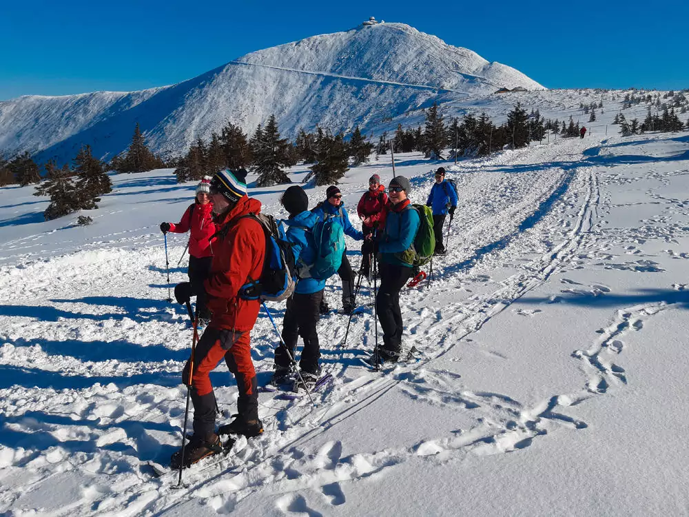 Transfer zum Okraj-Pass. Wir steigen zunächst zum Tafelstein auf, der für sein grandioses Schneekoppe-Panorama bekannt ist. Nun folgen wir dem breiten und aussichtsreichen Kammweg bis zum Gipfel der Schneekoppe – der höchste Punkt des Riesengebirges ist erreicht! Nach der Einkehr Abstieg zur Seilbahn und Talfahrt. (GZ: 5 Std., + 600 m, - 200 m).