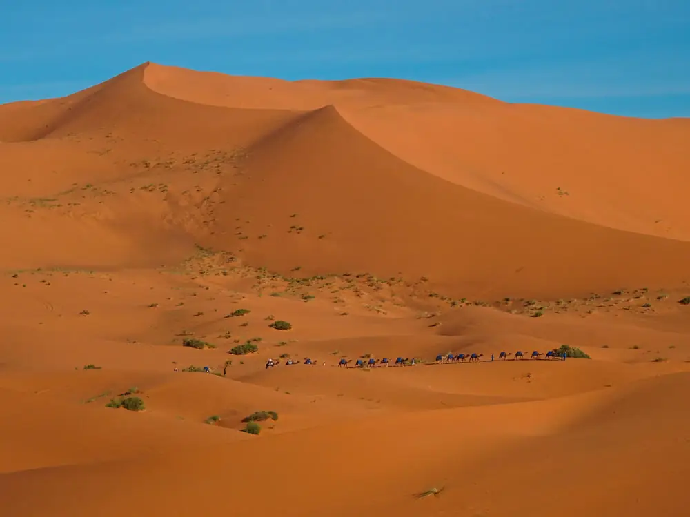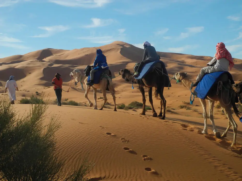 Wir besteigen Allradfahrzeuge und fahren in das Herz der marokkanischen Sahara. Im Erg Chebbi zeigt sich uns die Wüste in ihrer schönsten Form: goldene Dünen vom Wind zur sanften Hügellandschaft geformt. Wir erkunden auf Kamelen die Umgebung und erklimmen gemeinsam die Hohe Düne. Der letzte Sonnenuntergang des Jahres versetzt uns in entspannte Silvesterstimmung. GZ ca. 3 Std. Unser Dinner genießen wir unter einem (hoffentlich) klaren Wüstenhimmel im Antlitz der Sterne. Ein traumhaftes Wüstenabenteuer, ein unvergesslicher Jahresabschluss. 1 Übernachtung im privaten Wüstencamp. 65 km. (F, M, A)