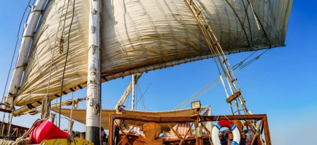 Willkommen an Board deiner Dahabiya. Das traditionelle Segelschiff verfügt über acht gemütliche Außenkabinen mit Klimaanlage und eigenem Badezimmer. Auf dem Sonnendeck stehen Liegestühle bereit, auf denen du herrlich entspannen und das Treiben am Nilufer beobachten kannst. Die Crewmitglieder stammen aus kleinen Orten entlang der Route und können dir während der Fahrt immer wieder gute Tipps geben und bei den Landgängen Kontakt zu Einheimischen herstellen.