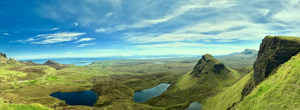 Die beeindruckende Felslandschaft des Quiraing im Norden der Halbinsel Trotternish auf Skye zählt zu den Wahrzeichen Schottlands. Viele Besucher erkunden nur den ersten Abschnitt des Weges und verpassen dabei spektakuläre Felsformationen wie The Prison, The Needle und The Table – eine flache Grünfläche, umgeben von Basaltfelsen, die als fantastischer Aussichtspunkt dient. Der Weg führt außerdem durch ein mystisches Tal und bietet immer wieder atemberaubende Panoramablicke.