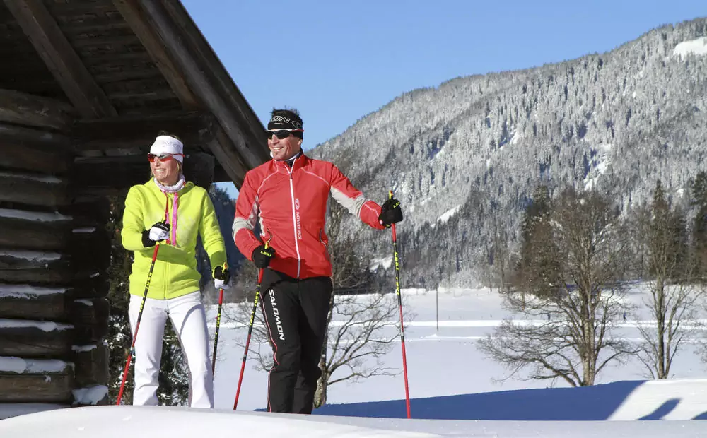 Wir laufen vom Hotel los und nehmen die Leitenloipe unter die Skier. Sie führt über ein sonniges Plateau nach Ramsau zum Stadion. Nach einer Pause laufen wir nach Leiten zurück (12 km). Wer noch mehr laufen möchte, kann auf dem Rückweg die Schleifen am Burglehner und Deutlhauser mitnehmen (je ca. 1,5 km).