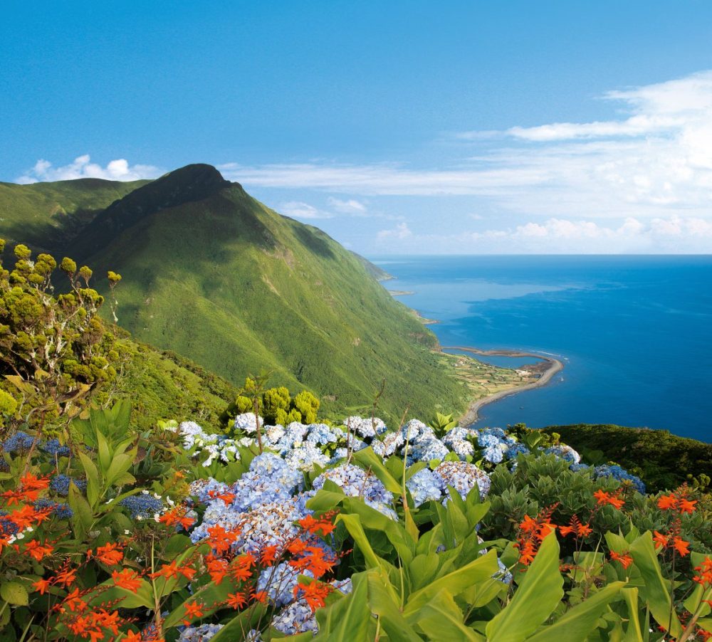Transfer zum Flughafen. Mittags fliegen Sie direkt weiter nach Flores (Flugzeit ca. 1h15). Am Flughafen in Santa Cruz das Flores übernehmen Sie Ihren Mietwagen und checken für 2 Nächte im Hotel Ocidental in Santa Cruz ein. Auf Flores, portugiesisch: „Blumen“, fällt Mutter Natur noch eine Spur urwüchsiger und üppiger als auf den anderen Azoreninseln aus. Die wenigen kleinen Ortschaften gehen neben dem bergigen, urzeitlich anmutenden Hochland mit tief eingeschnittenen Tälern und sieben idyllischen Kraterseen sowie einer fast ringsum steil abfallenden Küste beinahe unter. Entdecken Sie Europas westlichsten Außenposten, der zur Gänze als UNESCO-Biosphärenreservat klassifiziert ist und unter Kennern als das Parade-Wanderziel des Archipels schlechthin gilt, in Eigenregie. Steuern Sie Ihre Unterkunft an der Westküste an, die von Santa Cruz aus in rund einer halben Autostunde erreichbar ist und auf die sich die Top-Trails konzentrieren. Nahe der Ortschaft Fajãzinha keinesfalls entgehen lassen: den Abstecher zum „Poço da Alagoinha“ (oder auch „Lagoa das Patas“). Dieser rund 1,3 ha große, versteckt liegende See zu Füßen hoch aufragender, grüner Steilwände, von denen sich mehr als ein Dutzend Wasserfälle ergießen, darf getrost als eines der schönsten Fleckchen Erde auf den Azoren bezeichnet werden!