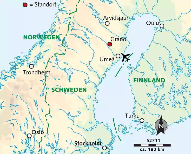 Hotel: Die Hotelanlage Granö Beckasin wurde 2014 erbaut. Qualität und Verbundenheit mit der Natur werden hier großgeschrieben. Dies spiegelt sich in der Bauweise und Verwendung der Materialien des Hotels wider sowie beim Gebrauch von lokalen Produkten bei den Mahlzeiten. Ein Highlight ist die Unterbringung in einem der "Aurora Tree Houses": Sie wohnen meterhoch über dem Boden, umgeben von Natur und genießen trotzdem den vollen Komfort eines Hotels (gegen Aufpreis buchbar). Zimmer: Wir sind im Eco-Hotel untergebracht, welches 12 Zimmer hat. Diese sind mit Bad oder Dusche/WC ausgestattet. Die 6 „Aurora Tree Houses“ sind ebenfalls mit Bad oder Dusche/WC ausgestattet. Verpflegung: Die Mahlzeiten nehmen wir in der Lodge ein, wo sich ebenfalls die Rezeption befindet. Darüber hinaus essen wir dort 3-mal zu Mittag, 2-mal findet ein „Outdoor Lunch“ statt. Lage: Die Hotelanlage liegt im Ort Granö mitten im Wald am Ufer des Flusses Umeälven zwischen den größeren Orten Umeå und Lycksele. Vom Flughafen Umeå ist es ca. 1 Stunde Fahrtzeit entfernt.