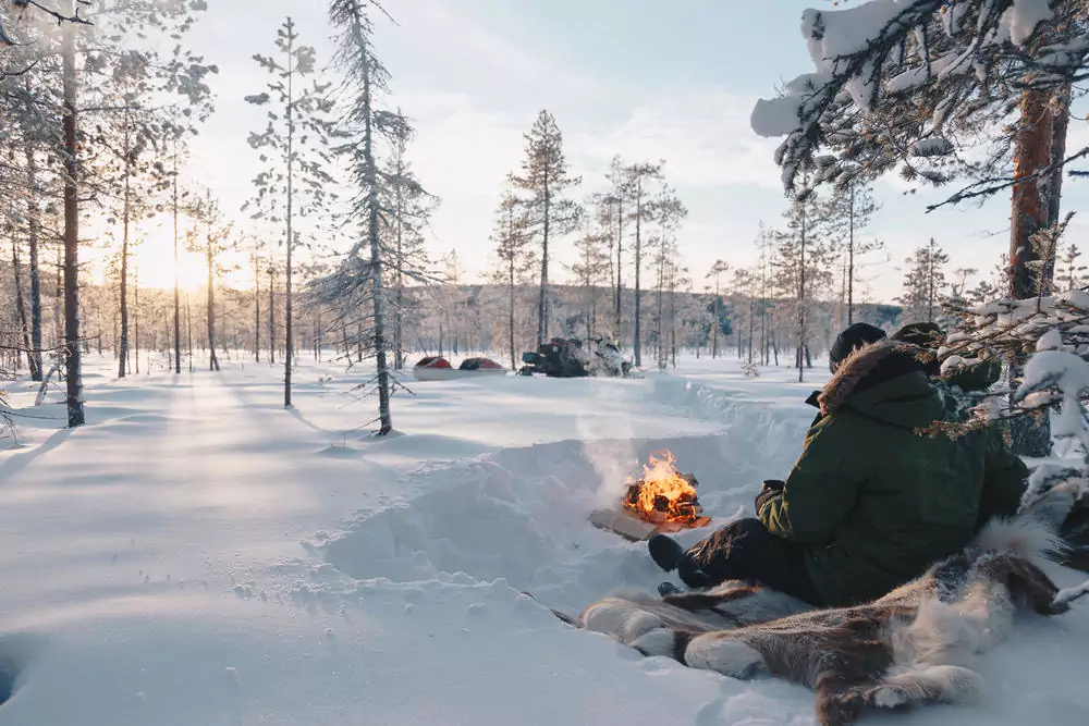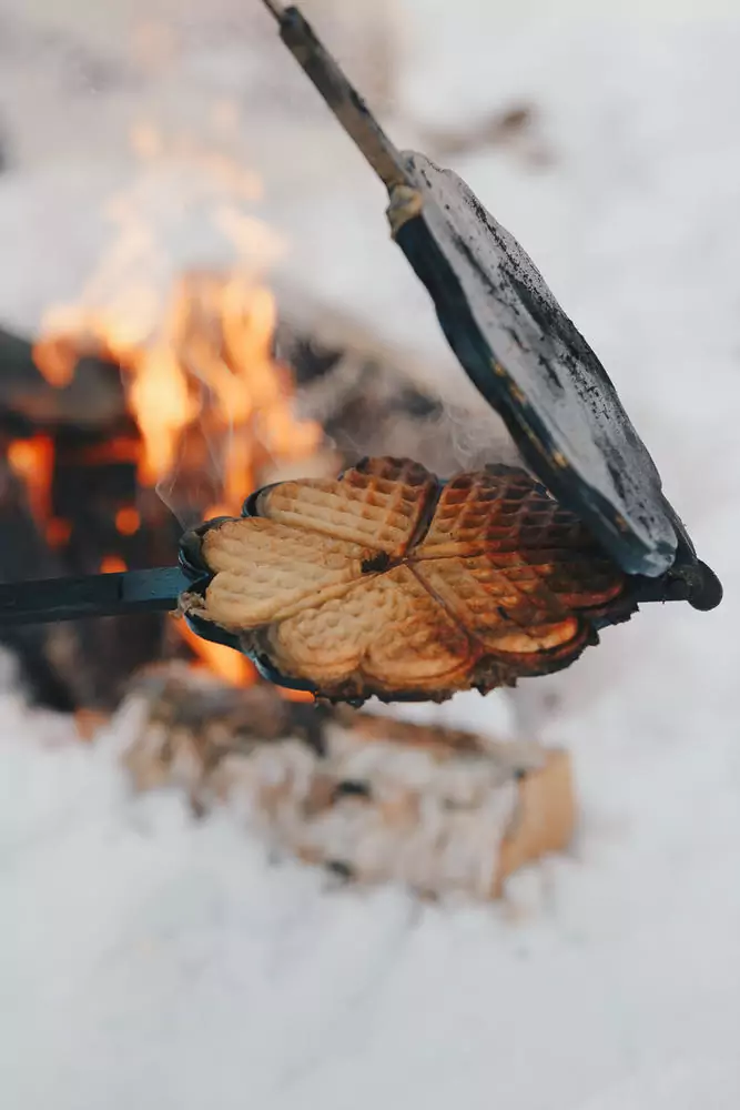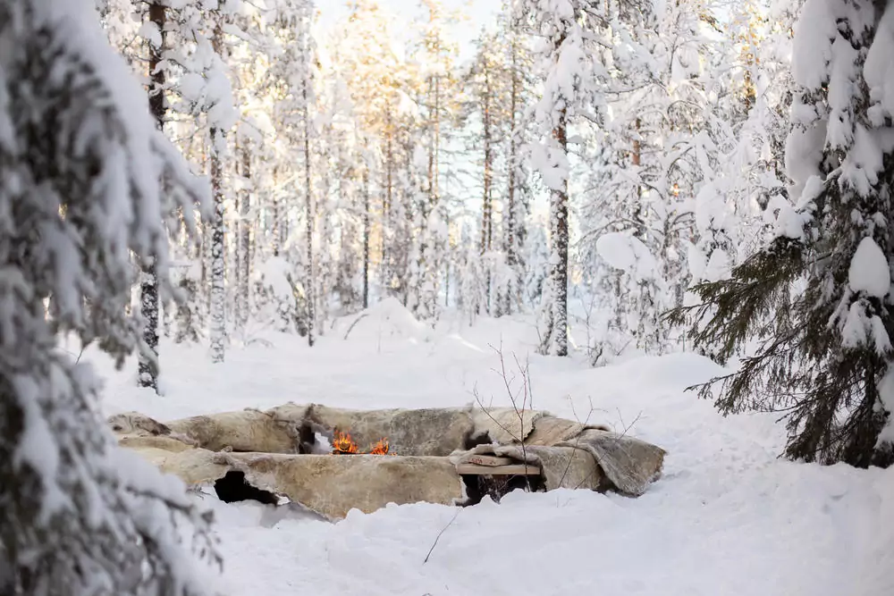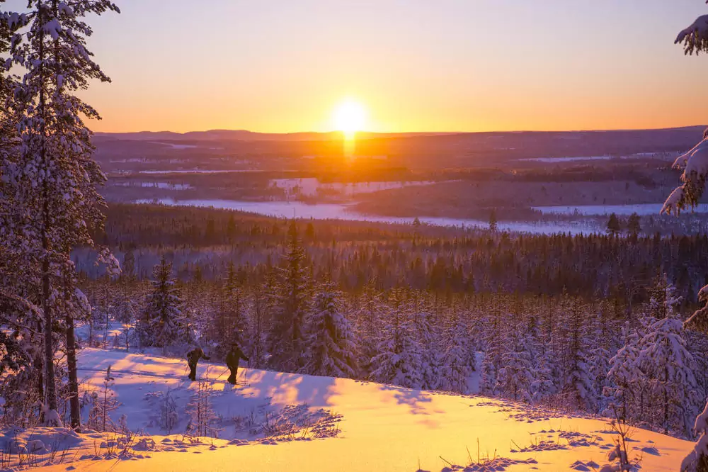 Heute lernen wir alles rund um das traditionsreiche samische Fortbewegungsmittel: Skier aus Holz, die den Menschen in solch abgelegenen Gebieten ein zügiges Vorankommen ermöglichen. Mit unseren Skiern gelangen wir zu den besten Stellen zum Eisangeln und versuchen unser Glück. Am gemütlichen Feuer bereiten wir unseren Outdoor-Lunch zu. Wer nicht mit Skiern fahren möchte, nimmt einfach Schneeschuhe. Nach der Rückkehr bleibt Zeit, in der Sauna zu entspannen.