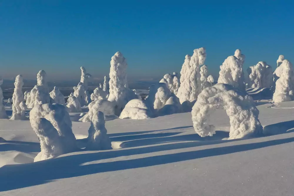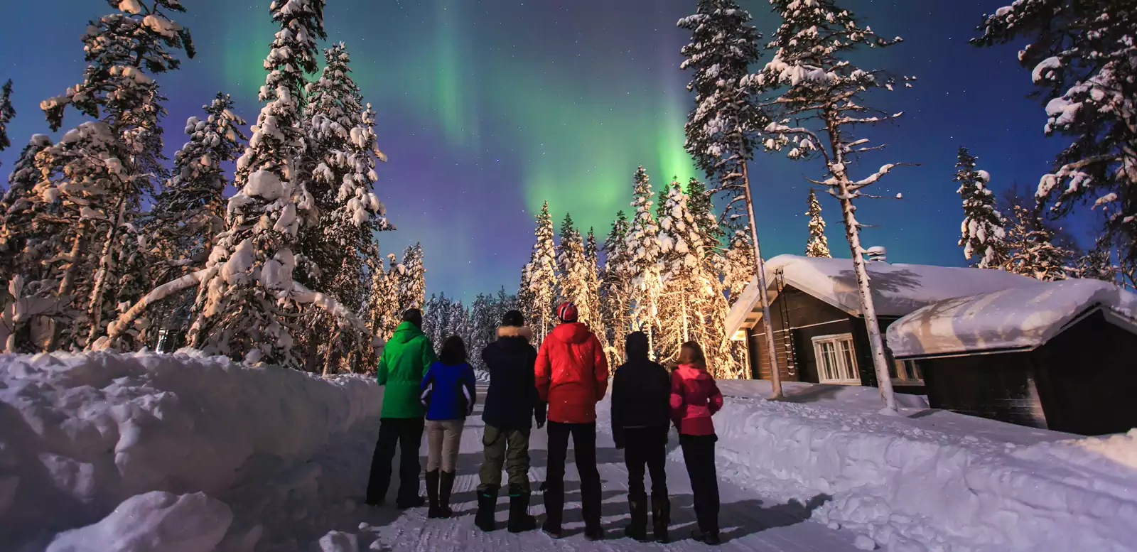 Auf Schneeschuhen erkunden wir unsere Umgebung. Wir wandern durch die verschneite Wildnis Lapplands (GZ: ca. 3 Std.) und genießen die kalte, klare Winterluft. Nach dem Abendessen begeben wir uns bei einer Nachtwanderung auf die Jagd nach dem mystischen Nordlicht.