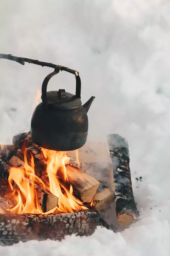 Durch die letzte Wildnis Europas wandern wir auf Schneeschuhen durch unberührte Natur (GZ: ca. 3 - 4 Std.). Nach dem Abendessen warten wir am Lagerfeuer bei heißer Schokolade auf das einzigartige Naturphänomen: die Polarlichter.