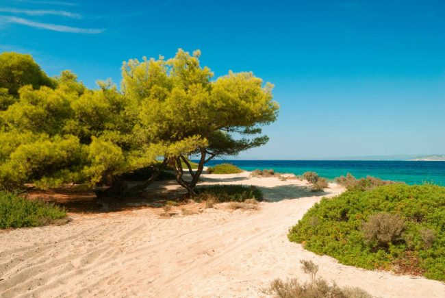 Der gewählte Wanderweg am heutigen Tag beginnt im alten Ort Nikiti auf Sithonia und führt durch duftende Pinienwälder bis etwa 200 Meter über dem Meer, mit Blick auf die Diaporos-Inseln. Vor Ihnen erhebt sich der Heilige Berg Athos, eine autonome Region Griechenlands. Weiter geht es durch Olivenhaine bis Agios Nikolaos (leicht, 8 km, ca. 4 Std., +/- 200 Hm). Anschließend können Sie nach Lust und Laune ein erfrischendes Bad am Strand Trani Ammouda genießen oder die Ruinen des alten Wachturms bei Ormos Panagias erkunden. (F/A)