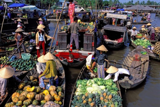 - Bootsfahrt im Mekong-Delta und einen schwimmenden Markt erleben