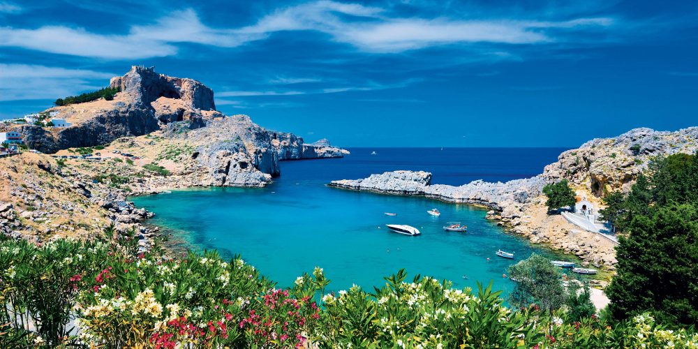 Ausgangspunkt dieser Wanderung ist das inmitten von Olivenhainen gelegene Archangelos, das größte Dorf der Insel. Vorbei an blühenden Wildblumen und herrlichen Orangenblüten gelangen Sie zu den „Sieben Quellen“ mit ihren erfrischenden Wasserkaskaden, einer der schönsten Naturplätze auf Rhodos. Etwa 4 km im Inselinneren gelegen, entspringen diese Quellen und bilden dort einen kleinen Bach. Entlang des 150 Meter langen Wassertunnels verlassen Sie das grüne Tal mit seinem markanten Mönchspfeffer, einer Pflanzenart, die in der Naturheilkunde eingesetzt wird (leicht, 8 km, Gehzeit: ca. 3 Std., +/-350 Höhenmeter). Dann fahren Sie nach Lindos. Die „weiße Stadt“ am Meer liegt malerisch an einer wunderschönen Bucht am Fuße des Felsens, auf dem die Akropolis über dem Meer emporragt. Genießen Sie von dort den zauberhaften Blick auf das charmante Städtchen. Lassen Sie sich von den alten Kapitänshäusern, der heiligen Marienkirche und der Festung der Johanniter-Ritter begeistern. Es bleibt Zeit, um auf eigene Faust durch die verwinkelten Gassen zu schlendern und an einem der beiden traumhaften Strände zu baden. (F)