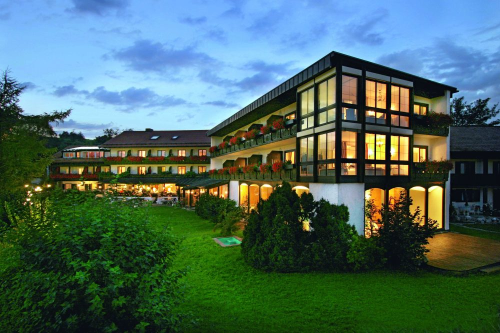 bietet auf 430 qm eine exklusive Wellness-Landschaft. Starten Sie in den Tag mit ein paar erfrischenden Bahnen im Panorama-Hallenbad (12 x 6 m) mit Zugspitzblick. Wohltuende Wärme und Entspannung verheißen die finnische Kelo-Blockhaussauna und die Aroma-Dampfsauna und Wohlfühl-Ruheraum mit Kamin. Im therapeutischen Farblicht-Thermium stärken Sie Ihre Abwehrkräfte und tanken neue Energie für den Alltag. Im Fitness-Raum trainieren Sie an modernen Geräten mit weitem Blick auf die umliegende Natur und die Bergwelt. Die große Bäderabteilung bietet ein umfangreiches Programm an Anwendungen und Packungen. Ein umfangreiches Angebot an Schönheitsbehandlungen und Massagen, teilweise mit duftenden Alpenkräutern und naturreinen Ölen, rundet Ihr Erholungs- und Verwöhnprogramm ab (gegen Gebühr). So ergänzen sich hier in idealer Weise die natürlichen Ressourcen des Allgäus mit den exklusiven Wellness-Angeboten des Hauses. Im Panorama Fitnesssalon stehen Ihnen einige Geräte zur Verfügung und während Sie auf dem Crosstrainer schwitzen fühlt es sich fast an als wären Sie in freier Natur. Bei der Aqua-Fit Wassergymnastik bewegen Sie sich gelenkschonend im Wasser und können anschließend Ihre Abwehrkräfte an der Vitamin-Bar stärken.