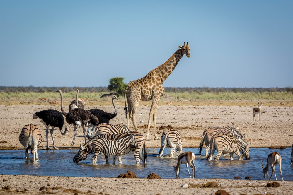 Früh morgens beginnt Ihr Tag inmitten von vier der berühmten „Big Five“: Elefant, Nashorn, Löwe und Leopard sind in dieser Gegend heimisch. Da der Etosha meist trocken ist, sind die Wasserlöcher eine kluge Anlaufstelle auf Ihrer Safari im Jeep. (F/A)