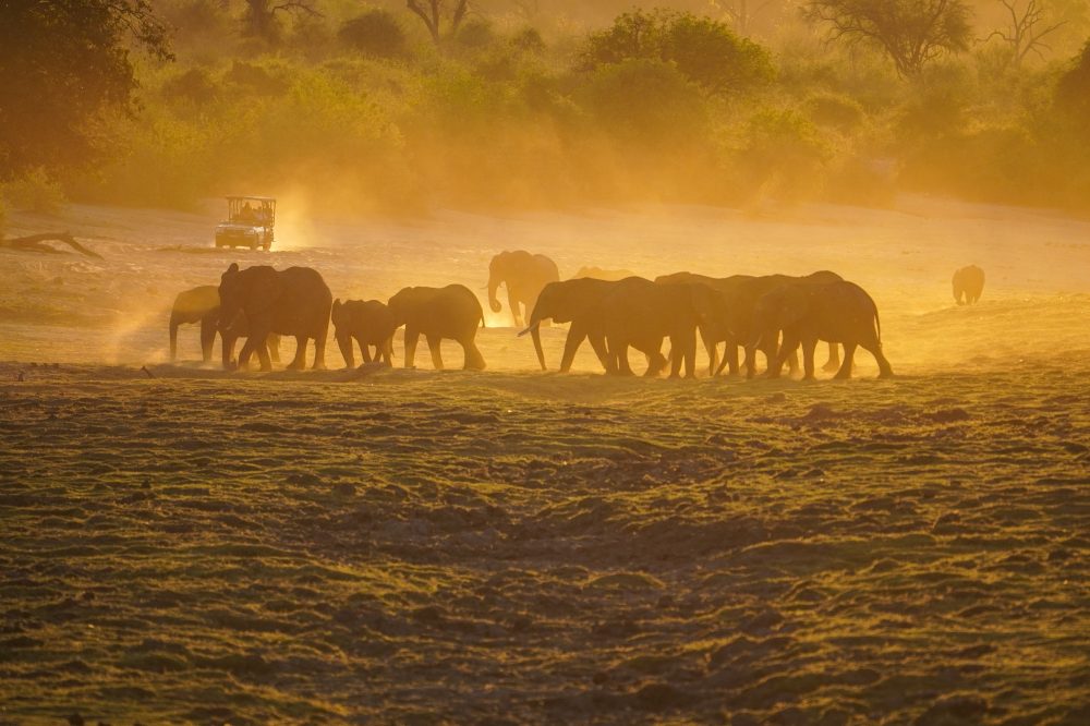 Heute begegnen Sie den Dickhäutern auf einer spannenden Jeep-Safari im Chobe-Nationalpark! alten Sie Ihre Kamera bereit, es warten beeindruckende Fotomotive! Nach dem Mittagessen in der Lodge setzen Sie Ihr Safari-Abenteuer vom Wasser aus fort. Sie gleiten den Fluss entlang, vorbei an Flusspferden, Krokodilen und weiteren beeindruckenden Wildtieren. Ein erlebnisreicher Tag voller tierischer Begegnungen klingt bei einem gemeinsamen Abendessen entspannt aus. (F/A)