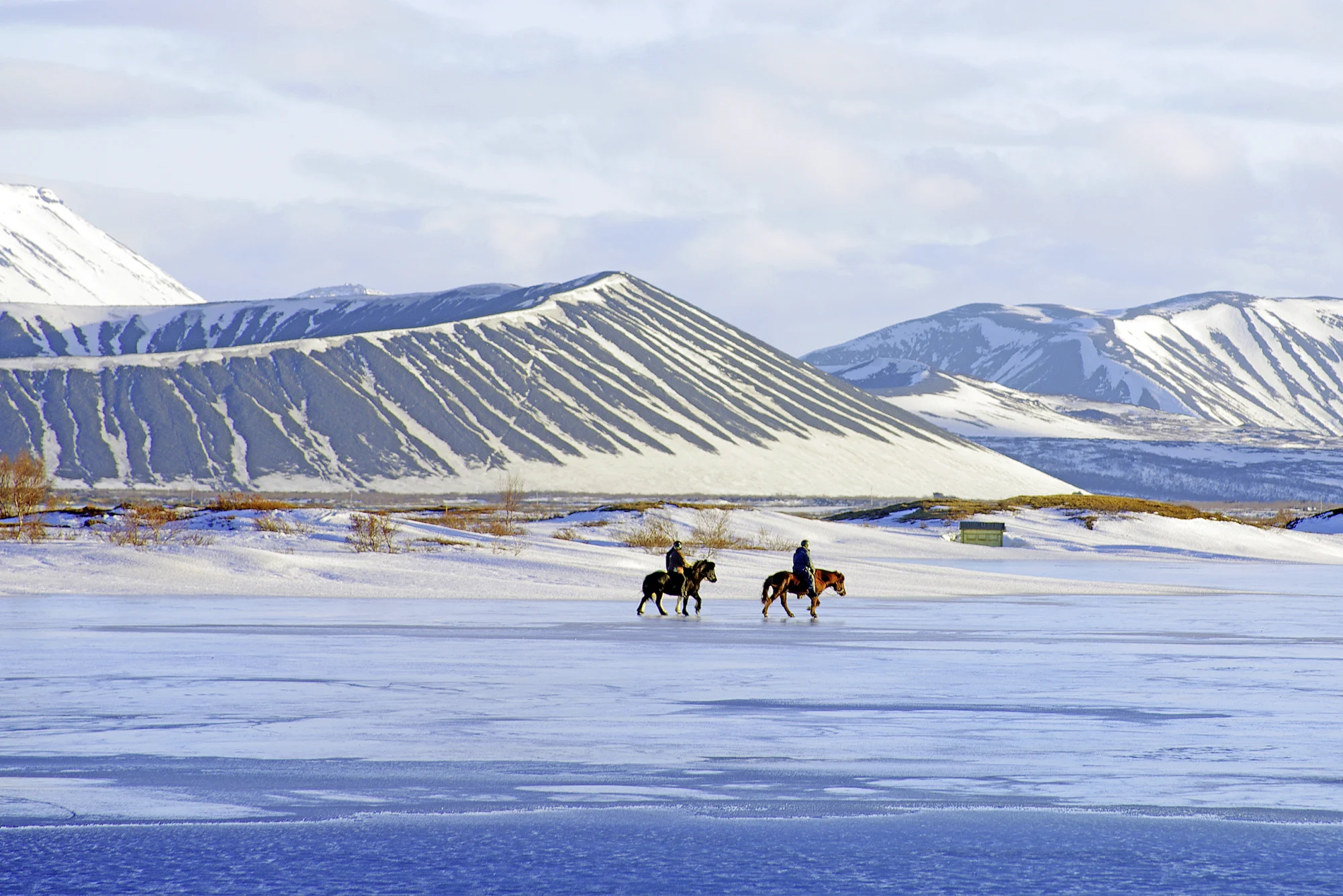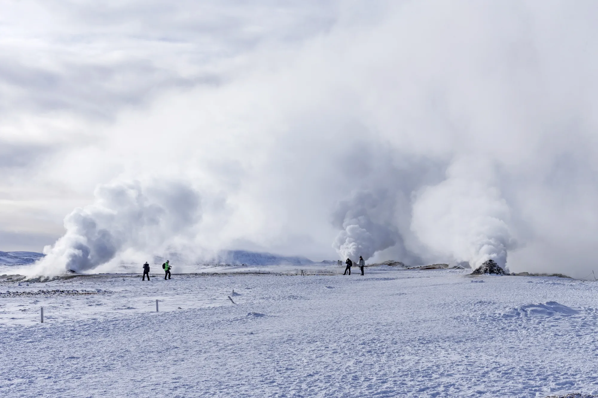 Vorbei am Wasserfall Godafoss geht es an den Myvatn-See. Rund um den See werden zahlreiche Naturschönheiten geboten. Das gigantische schroffe Lavalabyrinth Dimmuborgir gehört zu den faszinierenden Lavatürmen. Der Kraterrand des Hverfjall ist ein sehenswertes Ziel. Dieser ist einer der größten Explosionskrater der Welt und ca. 2.500 Jahre alt. Auch die brodelnden Schlammquellen im Solfatarenfeld Namaskard, die Dampffontänen und aquamarinblauen Seen der aktiven Vulkanzone Krafla sind einen Besuch wert. Entspannung bietet das geothermale Naturbad Myvatn (buch- und zahlbar vor Ort). Der Namafjall ist ein rotbrauner und von Schwefel gefärbter Bergkamm, der zum Vulkansystem der Krafla gehört. Unweit von Namafjall liegt die Heißwassergrotte Grotagja, die zum Baden genutzt wurde, allerdings ist sie mittlerweile dafür zu warm.
