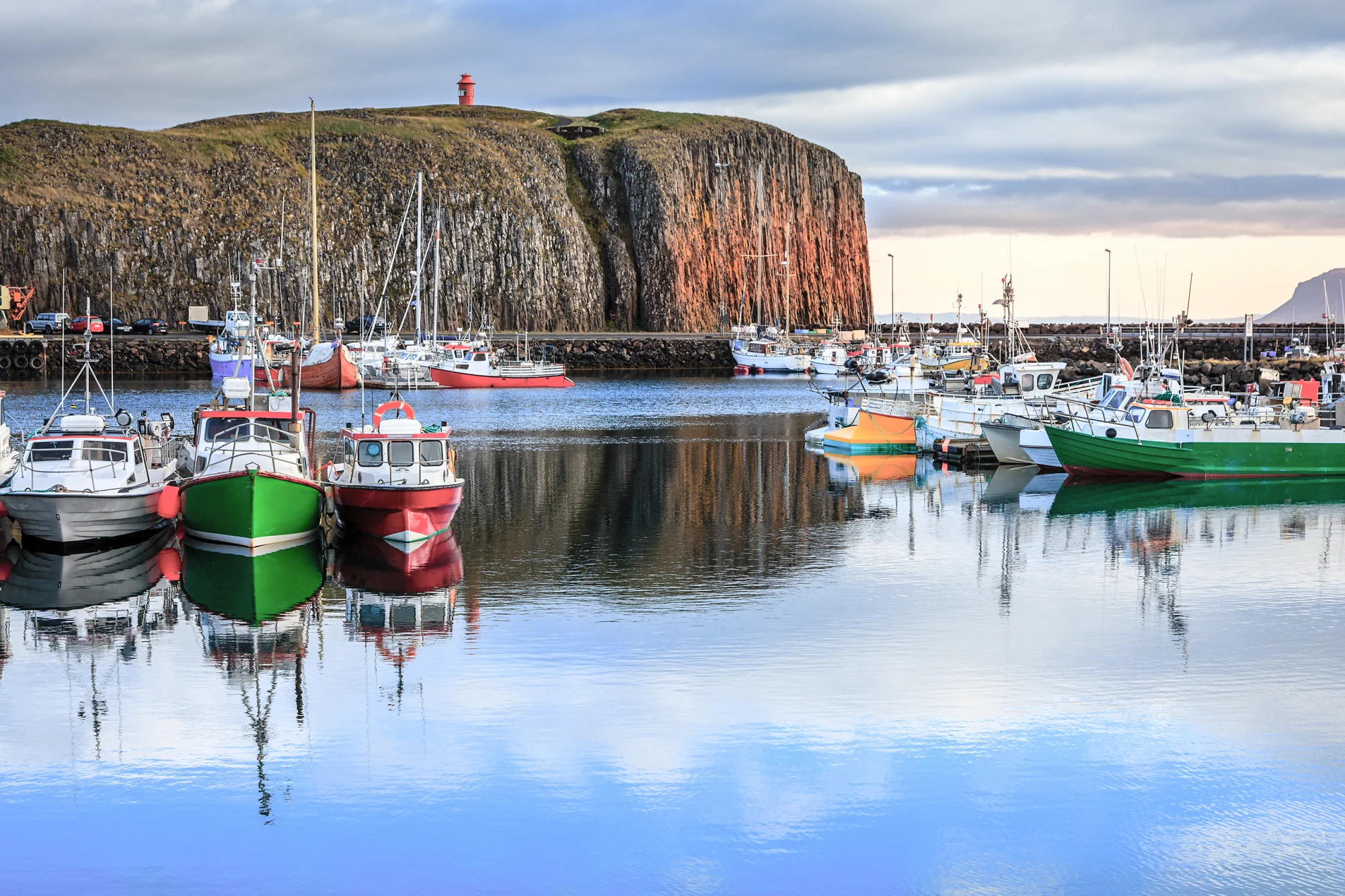 Auf dem Weg in den Norden kommen Sie am Borgarfjördur-Bezirk vorbei, welcher für seine sprudelnden und dampfenden heißen Quellen bekannt ist. Die größte und ergiebigste heiße Quelle, Deildartunguhver, fördert jede Sekunde über 180 Liter kochend heißes Wasser. Neben den Heißwasserquellen befindet sich das Geothermalbad „Krauma“, in dem Sie bei winterlichem Ambiente ein Bad nehmen können. Im östlichen Teil des Borgarfjördur-Bezirks liegen die faszinierenden Wasserfälle Hraunfossar und Barnafossar. Während Hraunfossar über Kaskaden aus dem Lavagestein fließt, bahnt sich der Barnafoss seinen Weg durch enge Schluchten und beeindruckende Felsformationen. Über die berühmte Ringstraße erreichen Sie bei Bifröst ein altes Lavafeld. Bei gutem Wetter lohnt sich eine Besteigung des Kraters Grabrok. Zwischen Laugarbakki und Blöndous in Thingeyrar wurde das erste Kloster des Landes gegründet, welches gleichzeitig eines der führenden Bildungszentren war. Heute können Sie dort eine Steinkirche besichtigen. Über die Ringstraße erreichen Sie Akureyri.
