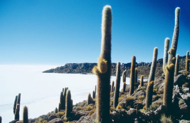 Heute erwartet Sie ein Highlight auf dieser Reise: Sie durchqueren den Salar de Uyuni, die größte Salzwüste der Welt mit mehr als 10.000 Quadratkilometern. Luftspiegelungen und Salzkristalle sorgen für faszinierende optische Täuschungen. Dabei besuchen Sie die Kakteen-Insel Isla Incahuasi, welche mitten im Salzsee liegt und farbliche Akzente mit den Riesenkakteen setzt. Diese kleine, karge Insel inmitten des weißen Nichts beheimatet bis zu 12 m hohe und ca. 1.200 Jahre alte Kakteen und bietet eine grandiose Rundumsicht über die weiße Fläche und die dahinter liegenden schneebedeckten Vulkanberge. Übernachtung im Hotel. (Fahrzeit ca. 4h, 250 km).
