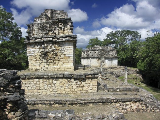 Palenque - Chicanná (Bus / 359.0 km / 250 Min.) Die Maya-Ruinen von Chicanná liegen ca. 300 km von Campeche entfernt. Nur in der Region Río Bec wurden Komplexe mit identischen Zwillingstürmen konstruiert. Die Türme stehen auf pyramidalen Unterbauten, auf denen tempelähnliche Gebäude errichtet wurden – komplett unerreichbar und ohne Innenräume; Beispiele reiner Scheinarchitektur.