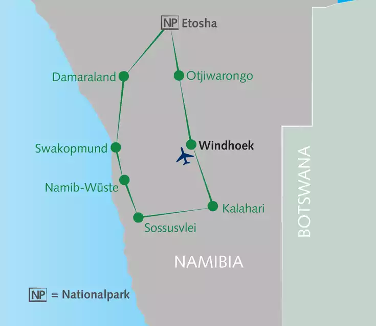 Namibia – das Land der endlosen Horizonte, der roten Dünen der Namib, wilder Tierbegegnungen und sternklarer Nächte. Gemeinsam erkunden wir die faszinierende Landschaft zwischen Kalahari und Etosha, wandern durch versteinerte Dünen und erleben hautnah die Tierwelt Afrikas bei spannenden Game Drives. Wir teilen unvergessliche Momente am Lagerfeuer und genießen authentische Naturerlebnisse – immer mit Gleichgesinnten an unserer Seite.