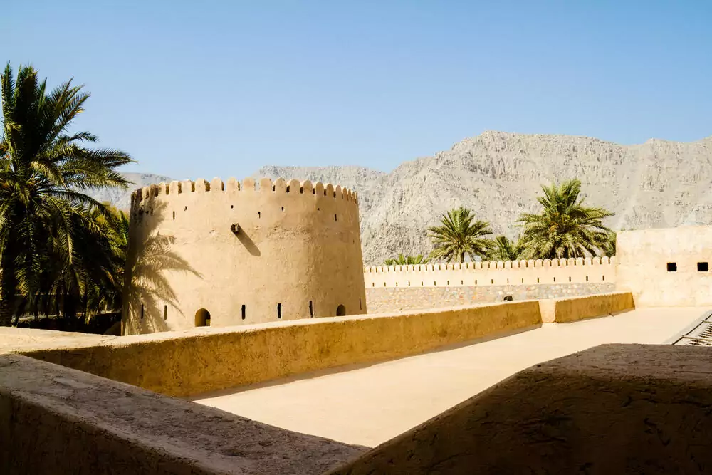 Nach dem Frühstück brechen wir auf zur omanischen Exklave Musandam. In Ras Al Dahrah passieren wir die Grenze und fahren mit herrlichen Ausblicken weiter bis zur Hafenstadt Khasab – zu unserer linken der Arabische Golf, zu unserer Rechten die Gipfel des Hajar-Gebirges. In Khasab angekommen, besuchen wir die von portugiesischen Seefahrern im 17. Jahrhundert erbaute Festung. 3 Hotelübernachtungen in Khasab. 180 km. (F)