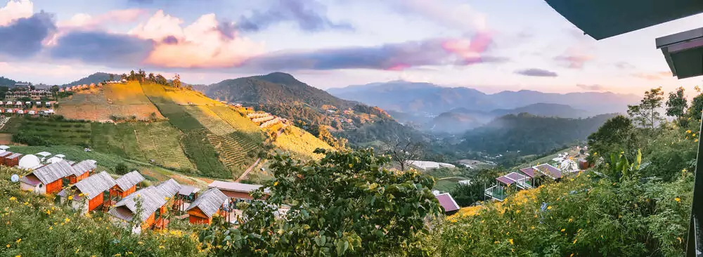 Auf dem Weg nach Mae Rim stoppen wir am Aussichtspunkt Mon Cham. Die Landschaft bleibt spektakulär! Am Nachmittag schnüren wir unsere Wanderschuhe: Auf schattigen Pfaden, mal mit weitem Blick, mal durch dichten Wald, wandern wir bergab zu unserer komfortablen Lodge. Umgeben von Reisfeldern und bewaldeten Hügeln liegt sie friedlich eingebettet in die Natur. GZ 2-3 Std. -300 m. Beim Abendessen erwartet uns ein Einblick in die Kultur des Hmong-Stammes mit Musik und Tanz. Lodge-Übernachtung in Mae Rim. 135 km. (F, A).