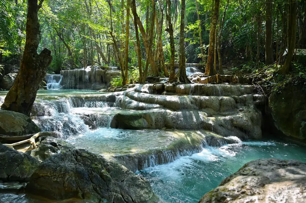 Fahrt zum nahegelegenen Erawan Nationalpark. Dort erwartet uns eine Wanderung hinauf zu den sieben terrassenförmig angelegten Wasserfällen des Parks. GZ ca. 3 Std. Die natürlichen Pools mit erfrischendem, kristallklarem Wasser laden zum Baden ein. 120 km. (F, A).