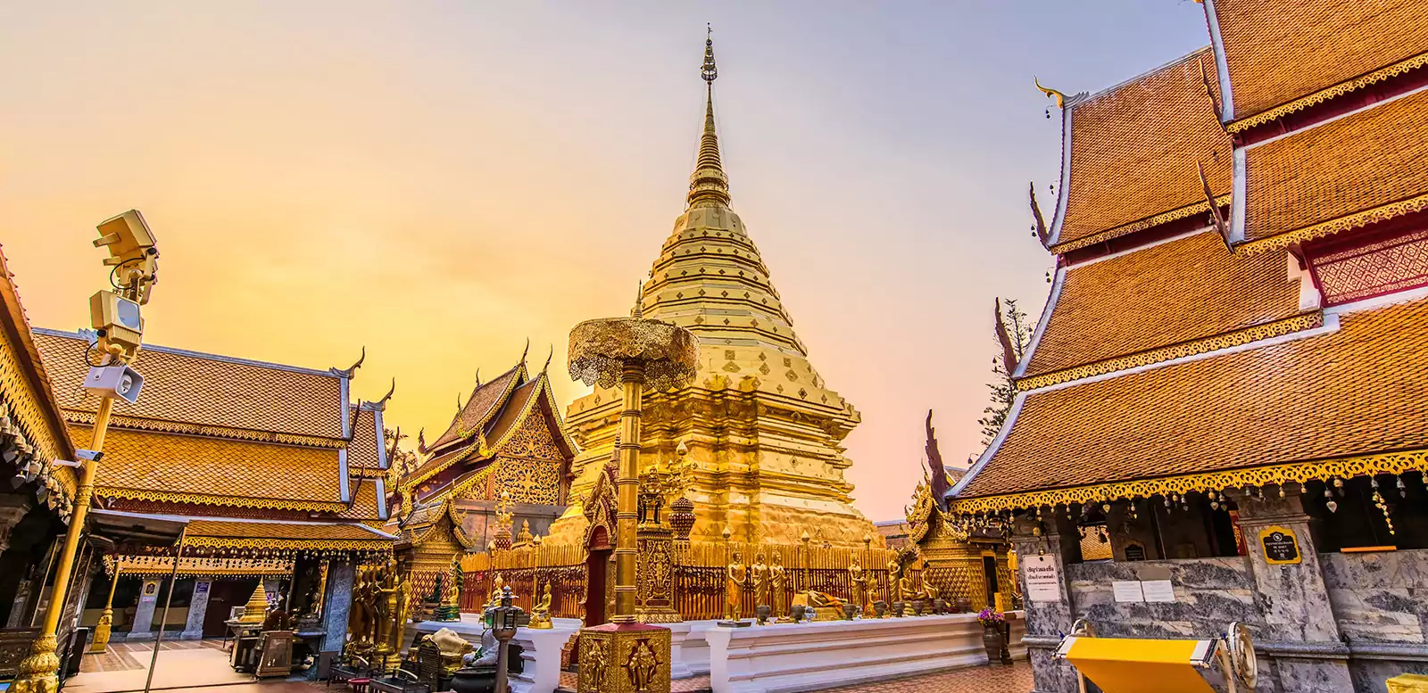 Am Morgen fliegen wir nach Chiang Mai, auch genannt Rose des Nordens. Nach dem Transfer ins Hotel beginnt unser Spaziergang durch die schöne Altstadt. Dort besichtigen wir drei bedeutende Tempel innerhalb der alten Stadtmauern. Danach fahren wir zum in der Sonne goldglänzenden Wat Doi Suthep, der als schönster Tempel Nordthailands gilt. Von hoch oben genießen wir spektakuläre Ausblicke über die Stadt. Hotelübernachtung in Chiang Mai. (F)