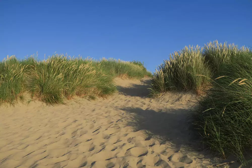 Die längste Straßenbahn der Welt bringt uns nach De Haan, wo wir die Küstenwanderung von Tag 2 durch Dünen, Heide und lichten Wald fortsetzen. Am Strand können wir den regen Schiffsverkehr beobachten. Kurz nach dem Fort Napoleon queren wir per Fähre den Hafen und erkunden Ostende, auch als "Königin der Seebäder" bezeichnet (GZ: 4 Std., kaum Höhenunterschiede).