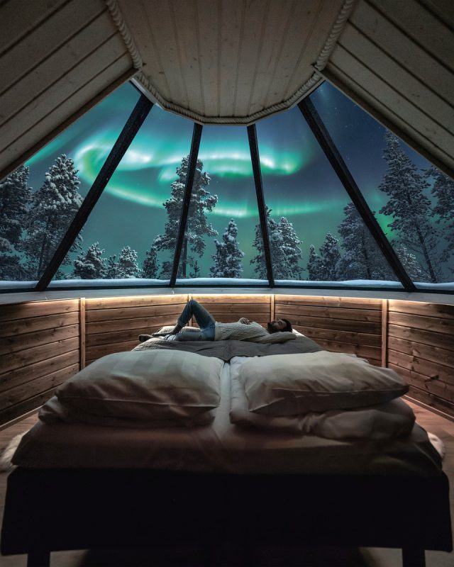 ist eine familiengeführte, exklusive Ferienanlage, ideal für Paare und kleinere Gruppen. Nur 15 Minuten vom Flughafen Ivalo und ca. 4 km vom Stadtzentrum entfernt ist die Unterkunft frei von Lichteinflüssen der Stadt und somit perfekt für die Beobachtung des Polarlichts am Abend. Das Haupthaus ist einem Lappenzelt nachempfunden und versprüht eine gemütliche Atmosphäre. Im Restaurant wird ein Frühstücksbuffet angeboten, ein Mittagsmenü à la carte, sowie ein 3-Gänge-Abendmenü, das am Tisch serviert wird. Verarbeitet werden qualitativ hochwertige Lebensmittel aus lokalen Zutaten mit dem Fokus auf Nachhaltigkeit. Für Entspannung sorgen die private Fass-Sauna sowie die Panorama Sauna mit Whirlpool (gegen Gebühr). Die Aurora Cabins sind um ein Rentiergehege angeordnet und ausgestattet mit Dusche und WC, Minibar-Kühlschrank, Nespresso-Maschine, WLAN, Doppel-/Zweibett und bieten durch das beheizte Glasdach eine herrliche Aussicht auf den Nachthimmel.