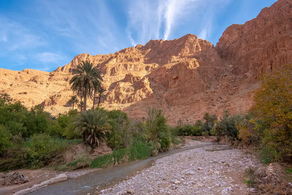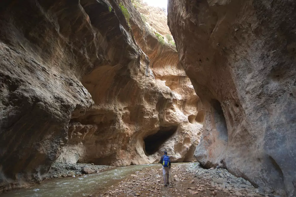 An den Tagen 5-6 wandern wir (abschnittsweise bis Kniehöhe) im Mgoun-Fluss. Trekkingsandalen sind empfehlenswert.