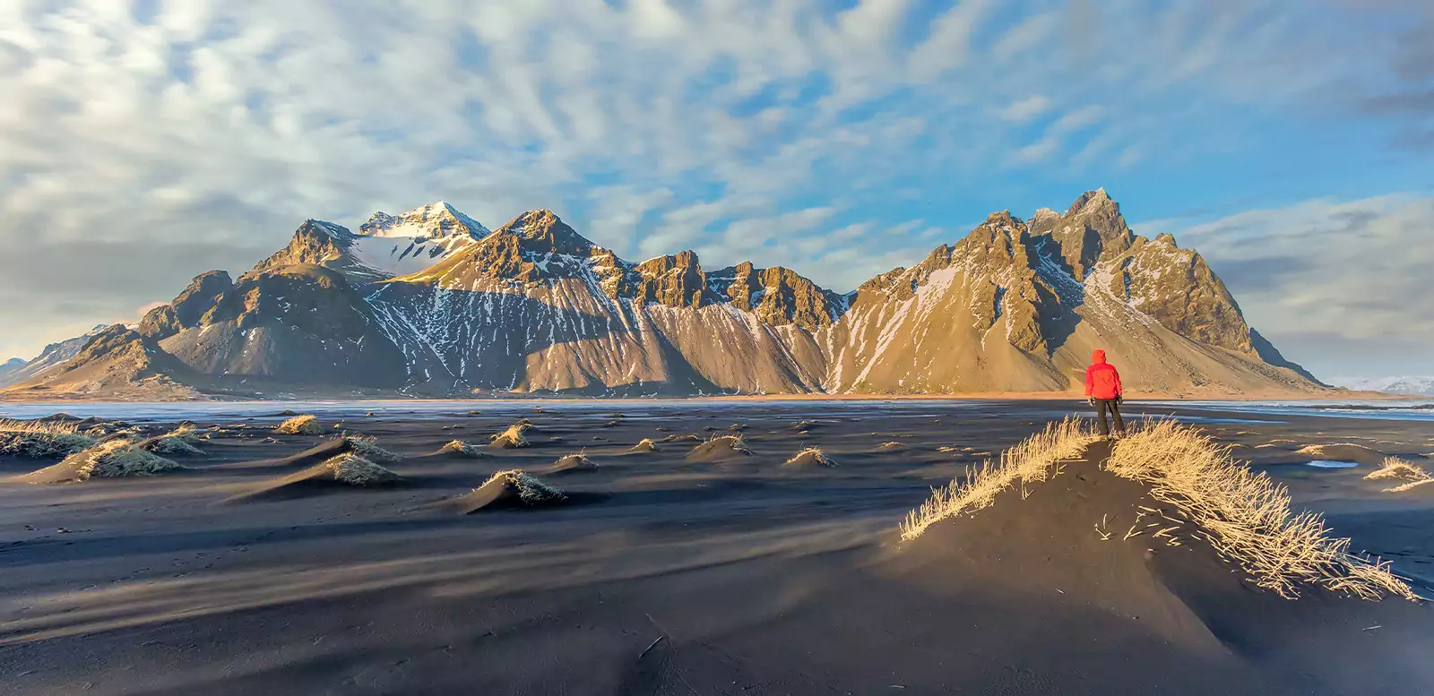 Der Besuch der Gletscherlagune Jökulsarlon mit ihren beeindruckenden Eisbergen - ein magischer Start in den Tag! Und es geht mindestens genauso gut weiter. Wir erwandern die Landzunge Stokksnes mit ihrem imposanten Berg Vestrahorn (GZ: 2 – 3 Std., +/- 55 m). Halte deine Kamera parat für dieses traumhafte Motiv!