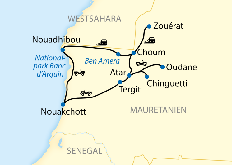 - Durchgehende deutschsprachige Reiseleitung ab/bis Nouakchott