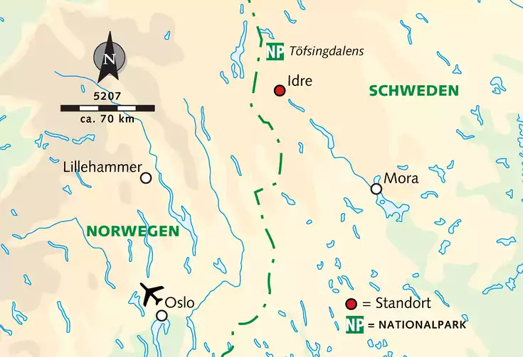 Eine fakultative Wanderung startet direkt am Hotel. Von der Oskarstugan genießen wir fabelhafte Fernblicke (GZ: 3 Std., +/- 140 m). Wer möchte, verlängert den Ausflug und wandert mit der Reiseleitung zu einem einsam und versteckt liegenden Bergweiher, der sich zum Baden eignet. Vielleicht locken aber auch Sauna und Kaffee im Hotel. Du entscheidest selbst!