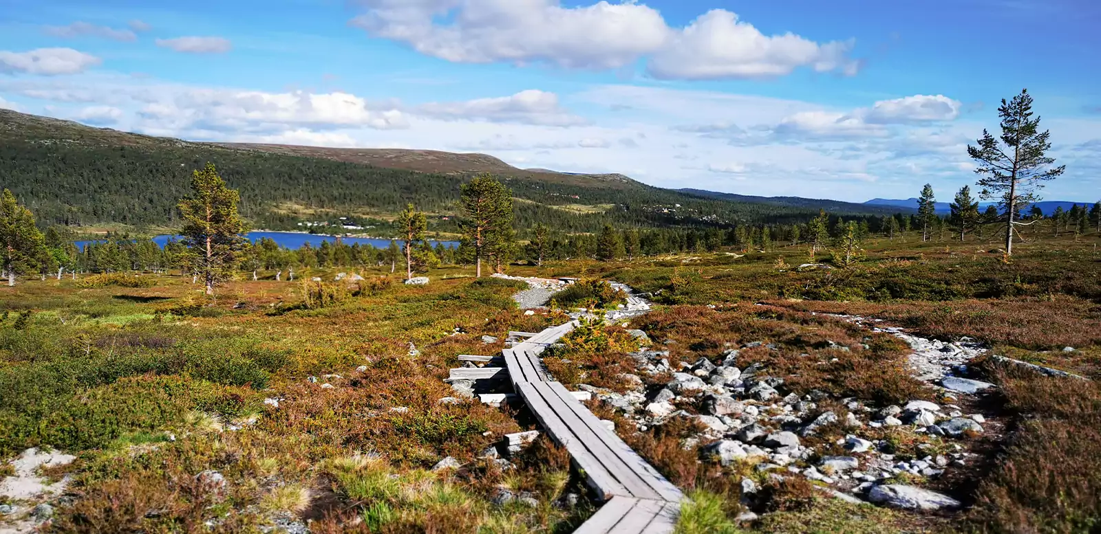 Mit dem Boot fahren wir am Morgen über den Grövelsjön. Unbemerkt erreichen wir Norwegen. Auf dem Linnésteig wandern wir durch die Natur des Femundsmarka-Nationalparks zurück nach Schweden. Schon der bekannte Botaniker war Mitte des 18. Jahrhunderts von der grandiosen Natur begeistert (GZ: 2 1/2 Std., +/- 290 m). In der Grövelsjön Sjöstugan (Seestube) können wir bei Kaffee und Waffeln (fakultativ) die erste Wanderung Revue passieren lassen.