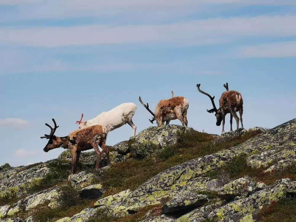 Mit seinen 1.131 Metern unterscheidet sich der Städjan von allen anderen Bergen der Region. Wie eine steile Insel ragt er aus der wunderschön welligen Landschaft empor. Der Aufstieg gelingt trotzdem relativ entspannt. Im Schutzgebiet Städjan-Nipfjället haben wir gute Chancen, Rentiere zu sehen, denn wir wandern durch die südlichsten Sommerweiden der dortigen Samenfamilien (GZ: 3 1/2 Std., +/-440 m).