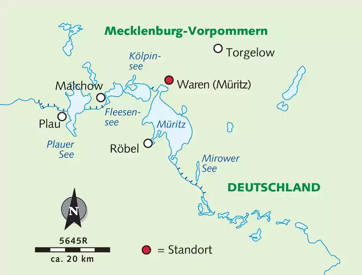 Wir tauchen ein in die faszinierende Landschaft der Mecklenburgischen Seenplatte mit über 1.000 glasklaren Seen, dichten Wäldern und beeindruckenden Kulturstätten. Vom Luftkurort Waren aus starten wir unsere täglichen Radtouren vorbei an versteckten Buchten, schilfbewachsenen Ufern und Seerosenteppichen. Wir erkunden den Müritz-Nationalpark, ein UNESCO-Weltnaturerbe, wo majestätische Stein- und Seeadler über uralten Eichen wachen. Auf gut ausgebauten Radwegen entdecken wir malerische Dörfer. Die glasklaren Seen laden uns zum Baden ein. Die Region ist ideal für entspannte Radtouren und Erholung am See. Worauf wartest du noch? Komm mit und erlebe den Zauber Mecklenburgs selbst!