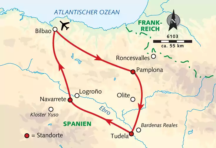 Flug nach Bilbao und ca. 2-stündiger Transfer nach Pamplona.