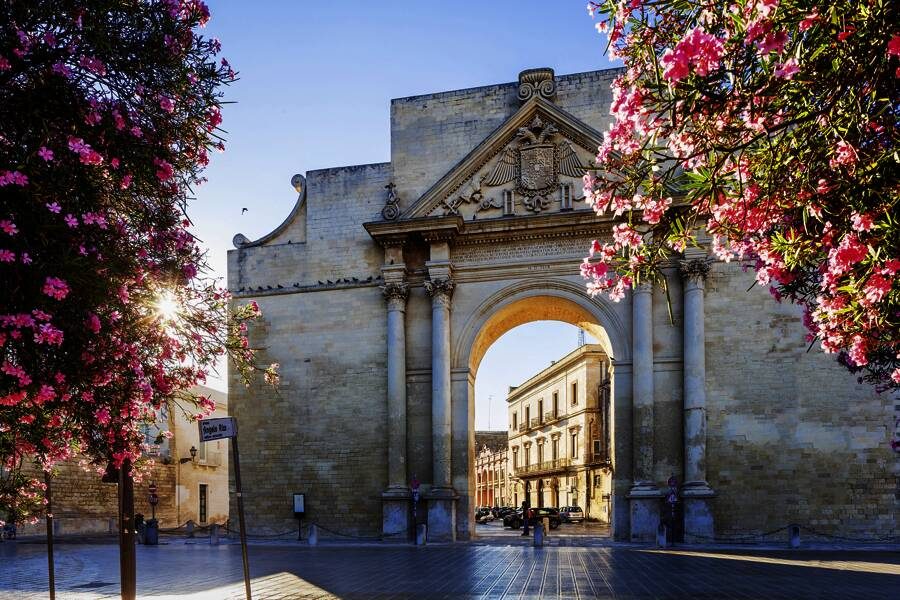 Vorhang auf für eine der schönsten Städte des Stiefels: Lecce, das "Florenz des Südens". Ein in cremeweißem Stein verewigtes Paradies erwartet uns hier zwischen barocken Fassaden, Skulpturen und Ornamenten. Beseelt fahren wir weiter zu einer Masseria, einem für Apulien charakteristischen Landgut, und treffen dort Paola, die uns mit Kostproben des lokalen Olivenöls verwöhnt. Und uns nebenher im Gespräch zu Experten für dieses edle Produkt macht. 170 km. (F, A)
