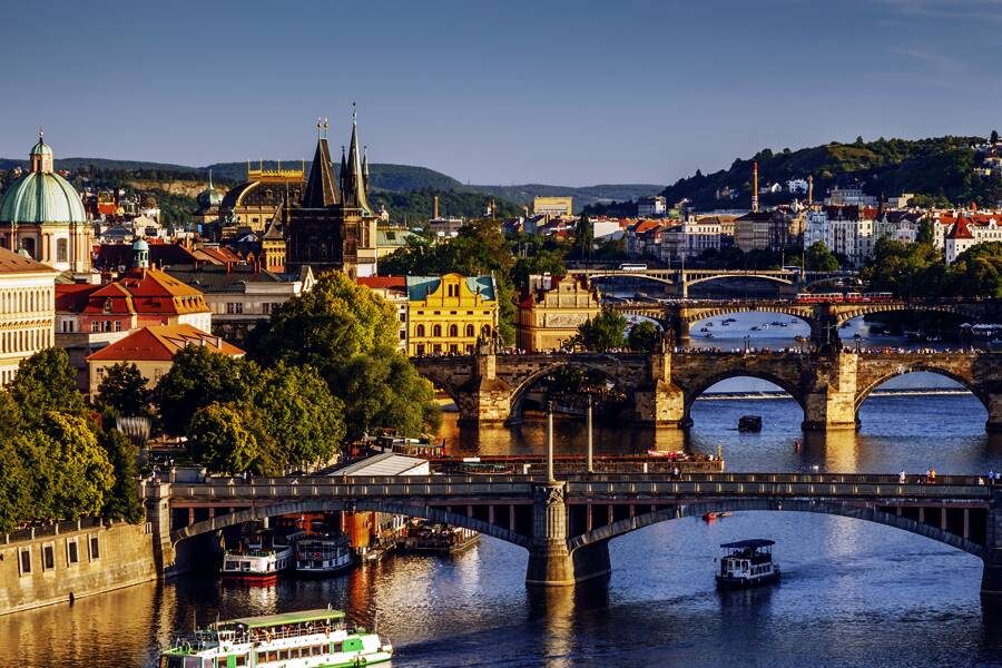 Aus dem Studiosus-Audioset haben wir die Klänge von Smetanas "Die Moldau" im Ohr, während wir auf dem Burgberg stehen: Hradschin und Veitsdom erhaben vor uns, Fluss und Altstadt zu unseren Füßen. Beim Besuch von Königspalast, Georgskirche und Loreto-Heiligtum lässt Ihre Reiseleiterin nicht nur Tschechiens Vergangenheit aufleben, sondern berichtet auch über die aktuelle Politik des Landes. Der Rest des Nachmittags gehört Ihnen. Möchten Sie eine Bootsfahrt auf der Moldau machen? Oder in einem Jugendstil-Kaffeehaus tschechischen Strudel genießen? (F)