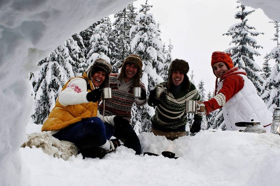 Das "Best-of" aus dem Winterleben der Finnen, unter diesem Motto steht unsere Woche: Tiefe Wälder und Tiefschnee - wie soll man da bloß vorwärtskommen? Wir schnallen Schneeschuhe unter und sind erstaunt, wie gut das geht! Und wie viel Spaß es macht, sich einen eigenen Weg zu bahnen - gerade wenn man sich selbst auf den Füßen steht und unweigerlich umfällt. Wir schauen natürlich zuerst bei unserem Iglu vorbei - ob es nun bezugsfertig ist? Irgendwo in den Weiten von Hügeln und Wäldern legen wir später unsere Mittagsrast ein: das Lagerfeuer knistert, und unser Picknick schmeckt köstlich - die frische klare Luft tut ein Übriges. Am Nachmittag sind wir zurück in Vuokatti. Wenn das Wetter mitspielt und uns nicht vorher die Müdigkeit übermannt, lohnt sich am späten Abend unbedingt ein Blick auf die Polarlicht-App: Ob wir das mystische Farbenspiel auf ein Foto gebannt bekommen? (F, M)