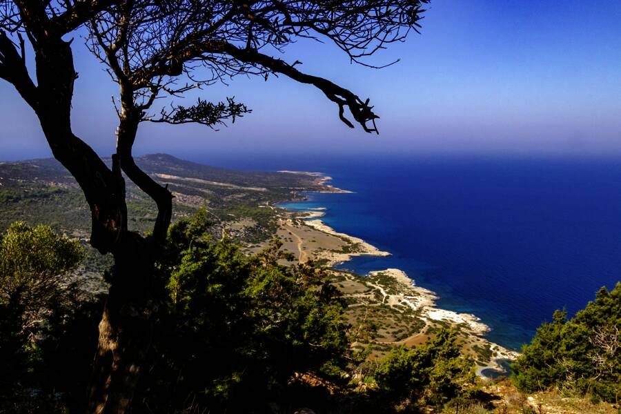 Heute haben wir fast die ganze Insel im Blick: bei der • Wanderung (4 Std., mittel, ↑100 m ↓100 m) um den Olymp, den mit knapp 2000 m höchsten Berg Zyperns. Er duftet nach Schwarzkiefern und Wacholderbüschen. Anschließend spazieren wir durch die Gassen des malerischen Bergdorfes Omodos, statten der Heiligkreuzkirche einen Besuch ab und stärken uns am Dorfplatz im Schatten der Maulbeerbäume mit einem griechischen Kaffee. Dann rollt unser Bus zur Küste. Am Aphroditefelsen entführt Sie Ihre Reiseleiterin in die griechische Sagenwelt: Wo die Liebesgöttin einst schaumbekrönt dem Meer entstieg, legen wir ein Herz aus weißen Kieselsteinen und stoßen mit einem Glas Commandaria-Likör auf das schönste aller Gefühle an. 160 km. Drei Übernachtungen im Bergdorf Droushia auf der Akamas-Halbinsel. (F, A)