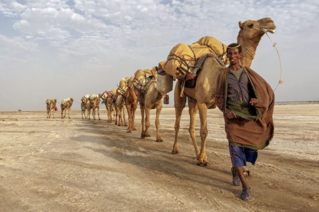Im Morgengrauen haben Sie noch einmal die Möglichkeit das überwältigende Naturschauspiel zu erleben. Anschließend genießen Sie frischen Kaffee und ein ausgiebiges Frühstück im Camp, verstauen das Equipment in den Fahrzeugen und fahren weiter Richtung Norden querfeldein durch die Danakil nach Hamed Ela. Die kleine Salzstemmer-Siedlung wirkt wie ein Außenposten der Zivilisation, dessen „weißes Gold“ zahlreiche junge Männer lockt. Übernachtung im Zelt. (Gehzeit ca. 2-3h, 500 m; Fahrzeit ca. 2-3h; 80 km).