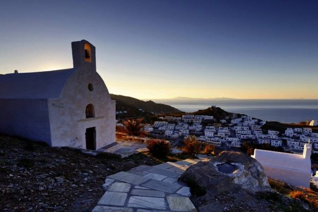 Vormittags auf die Fähre, fertig, Ios und in knapp einer Stunde nach Ios. Tagsüber zeigt sich die Chora von Ios von der romantischen, geradezu verschlafenen Seite: verwinkelte Gassen, weiße Häuschen, bunte Boutiquen, blumenverzierte Fassaden. Taverne mit schattigem Plätzchen und griechischem Mokka gefällig? Am späten Nachmittag kraxeln wir hoch zur Kirche Panagia Gremiotissa, Wahrzeichen von Ios und Sonnenuntergangs-Spot der Superlative: Hammer! Vom Sundowner ins Nightlife ist es dann nicht mehr weit - wenn die Nacht hereinbricht, wechselt der Ort auf dem Berg in den Ausgeh-Mode und Dachterrassenbars, Cafés und Tavernen füllen sich ... (F)