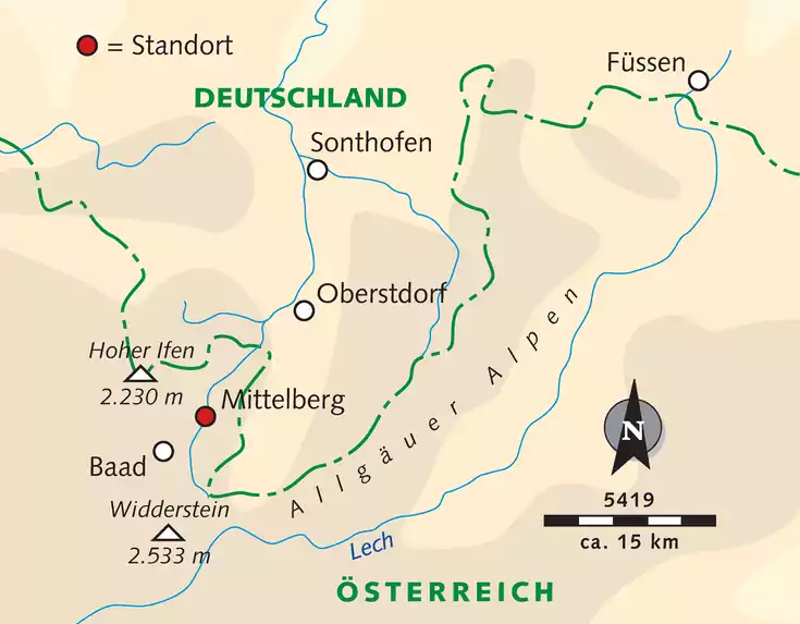 Hotel: Zum Drei-Sterne-Naturhotel Lärchenhof (24 Zimmer) gehören ein großer Garten mit Liegestühlen, eine Außenterrasse, eine Saunaanlage (kostenlos) mit 4 verschiedenen Saunen und einem Ruheraum, sowie einem Außenbereich. Die freundliche Besitzerfamilie nennt es bewusst "Naturhotel", denn die Zimmer sind unter baubiologischen Gesichtspunkten erbaut und mit Vollholzmöbeln und Naturlatexmatratzen ausgestattet. Dienstags hat das Hotel Ruhetag: Es gibt dann keinen Zimmerservice. Zimmer: geräumige, helle Zimmer mit Telefon, Sat-TV, Föhn und Sitzecke. Die Doppelzimmer und Doppelzimmer zur Alleinbenutzung verfügen zusätzlich über Balkon oder Terrasse, die Einzelzimmer über eine Terrasse. Verpflegung: Frühstück und 3x Abendessen im auswärtigen Restaurant Lage: Das Hotel liegt ruhig und trotzdem zentral im kleinen Dorf Mittelberg auf 1.200 m Höhe.