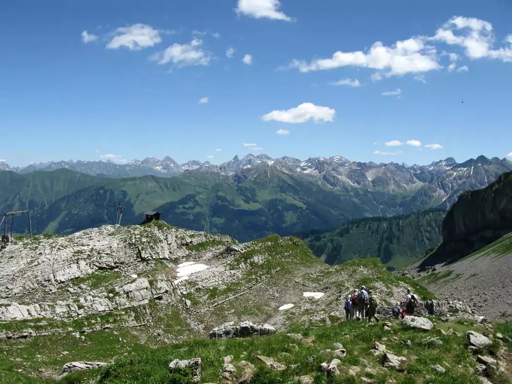 Start unserer Wanderung ist an der Bergstation der Kanzelwand. Auf unserem Weg über das Fellhorn zum Söllereck begleitet uns die atemberaubende Aussicht über das vorgelagerte Allgäu. Der Abstieg erfolgt mit der Söllereckbahn oder zu Fuß (GZ: 4 Std., + 450 m, - 680 m).