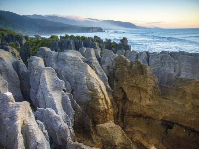 Die Busfahrt zur Gletscherzunge ist kurz, das Naturschauspiel großartig: aus zerklüfteten Eismassen rinnen graue Schmelzwasser durch satt grünen Regenwald – und bald darauf ins Meer. Weiter geht die Reise die immergrüne Westküste entlang nach Norden, über einst boomende Goldgräberorte wie Harihari und Ross. Ganz besonders „grünt“ es in Hokitika. Die Kleinstadt ist das Zentrum der Greenstone-Verarbeitung. Schon bei den Maori war neuseeländische Jade von besonderem Wert. Wir schauen in einer Werkstatt zu, wie die Steine zu Pretiosen geschliffen werden. Vielleicht finden wir hier ja ein persönliches Reiseandenken. Anschließend Weiterfahrt nach Greymouth, wo wir Shantytown, einen historischen Kulturerbepark, besuchen. Danach geht es weiter nach Punakaiki wo der heutige Tag für uns endet. (ca. 190km)