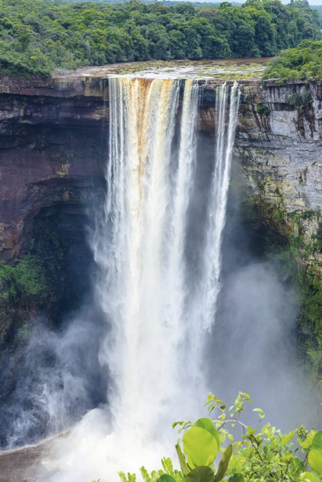 Der Kaieteur-Wasserfall ist mit 226 Metern Höhe einer der höchsten einstufigen Wasserfälle der Welt und ein absolutes Naturwunder. Der Flug über das unberührte guyanische Hochland bietet bereits spektakuläre Ausblicke auf endlose Regenwälder und Tafelberge. Am Wasserfall angekommen, eröffnet sich ein atemberaubender Blick auf die herabstürzenden Wassermassen des Potaro-Flusses. Die Umgebung ist Heimat einzigartiger Pflanzen wie der fleischfressenden Bromelien und des winzigen goldenen Pfeilgiftfroschs. Nach dem Rückflug, nachmittags, lädt die Georgetown Seawall zum entspannten "Liming" (kreolisch für entspanntes Beisammensein) ein, wo Einheimische bei Sonnenuntergang spazieren gehen und die Meeresbrise genießen.