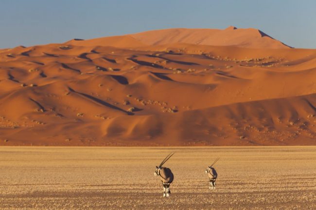 Die älteste Wüste der Erde wartet auf uns. Es geht zunächst in ein privates Naturreservat. Einfache Zeltchalets an Felshügeln bieten einen fantastischen Blick in die Wüste. Spätnachmittags der Ausflug im offenen Fahrzeug zu den nahegelegenen Mamorbergen, wahrscheinlich mit Sichtung von Oryx, Springböcken und Straußen. Die Sonne verabschieden wir mit einem Sundowner in der Hand. Abends das BBQ-Dinner unter Milliarden von funkelnden Sternen, gefühlt so nahe, dass man sie anfassen kann, ein atemberaubender Anblick.