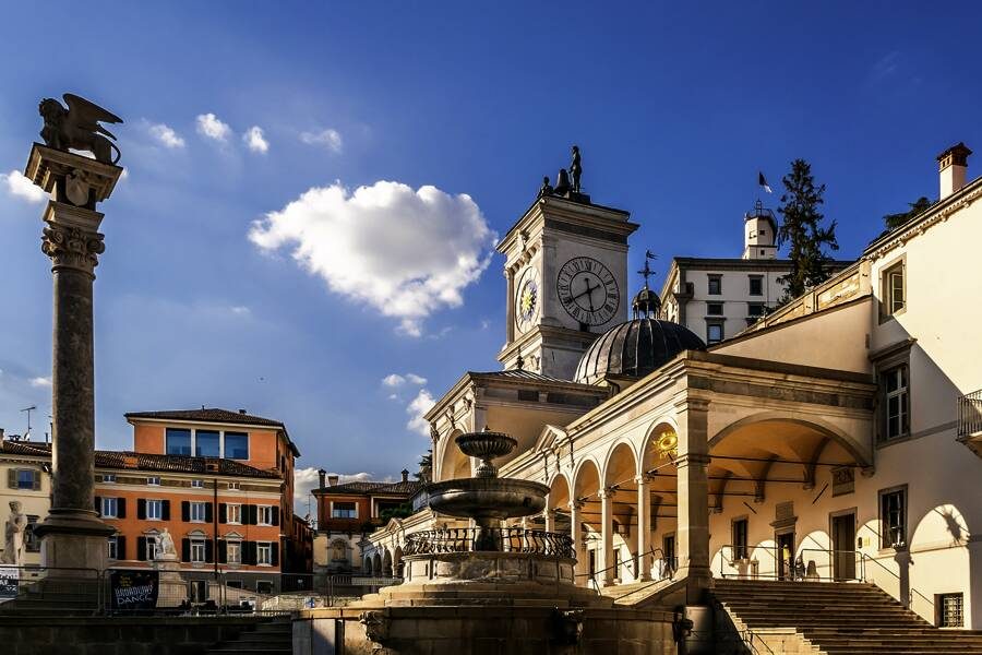 Bahnanreise 1. Klasse zum Flughafen und Flug nach Triest-Monfalcone. Ein Vertreter von Studiosus erwartet Sie und sorgt für den Transfer zum Hotel in Udine, wo Sie abends Ihre Studiosus-Reiseleiterin begrüßt. 50 km. Abendessen im Hotel: Cincin auf unsere Reise zur unbekannteren Seite der Alpen und zu österreichisch-slawisch-italienischen Traditionen! Drei Übernachtungen in Udine. (A)