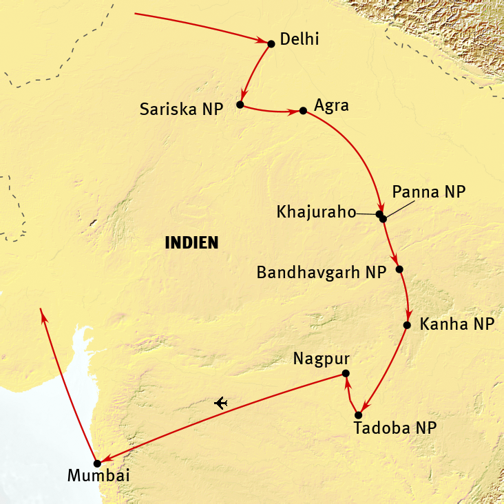 - durchgehende deutschsprachige Reiseleitung ab Delhi/bis Nagpur