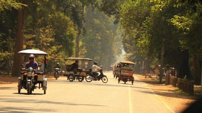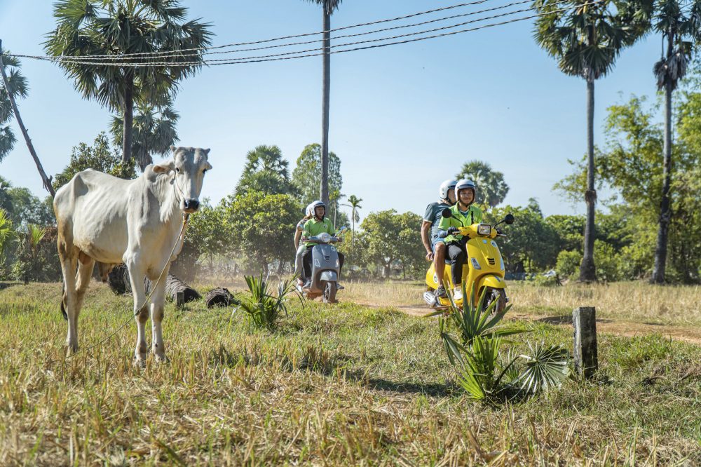 Heute erkunden wir das ländliche Kambodscha auf besondere Weise: bequem als Mitfahrer auf einer Vespa mit eigenem Fahrer. So lassen sich die kleinen Wege und Dörfer rund um Siem Reap besonders authentisch und entspannt erleben. Nach dem Besuch eines kleinen Freiluftmarkts halten wir an einer ländlichen Pagode. In ruhiger Atmosphäre nehmen wir an einer kurzen Segenszeremonie teil, ein traditioneller Ritus, der Glück und Schutz für den weiteren Weg symbolisieren soll. Unterwegs besuchen wir kleine Familienbetriebe, in denen auf traditionelle Weise Reiswein, Bambus-Klebreiskuchen, Körbe und Khmer-Reisnudeln hergestellt werden. Gespräche, Einblicke und kleine Kostproben geben einen lebendigen Eindruck vom Alltag auf dem Land. Am historischen Wasserreservoir West Baray genießen wir eine kurze Erfrischungspause mit Blick auf den riesigen Stausee aus der Zeit des alten Khmer-Königreichs. Nach dem Mittagessen im SPOONS Café & Restaurant, einem Ausbildungsprojekt mit sozialem Engagement, das benachteiligte Jugendliche fördert, besuchen wir eine stilvolle Kunstgalerie mit Werkstatt, in der traditionelle und zeitgenössische kambodschanische Kunst in besonderem Rahmen präsentiert wird. Zum Abschluss erhalten wir im APOPO HeroRats-Zentrum spannende Einblicke in ein innovatives Minenräumprojekt: Afrikanische Riesenhamsterratten, speziell trainiert, spüren versteckte Sprengstoffe auf. Eine eindrucksvolle Verbindung von Technik, Tiertraining und humanitärer Hilfe.